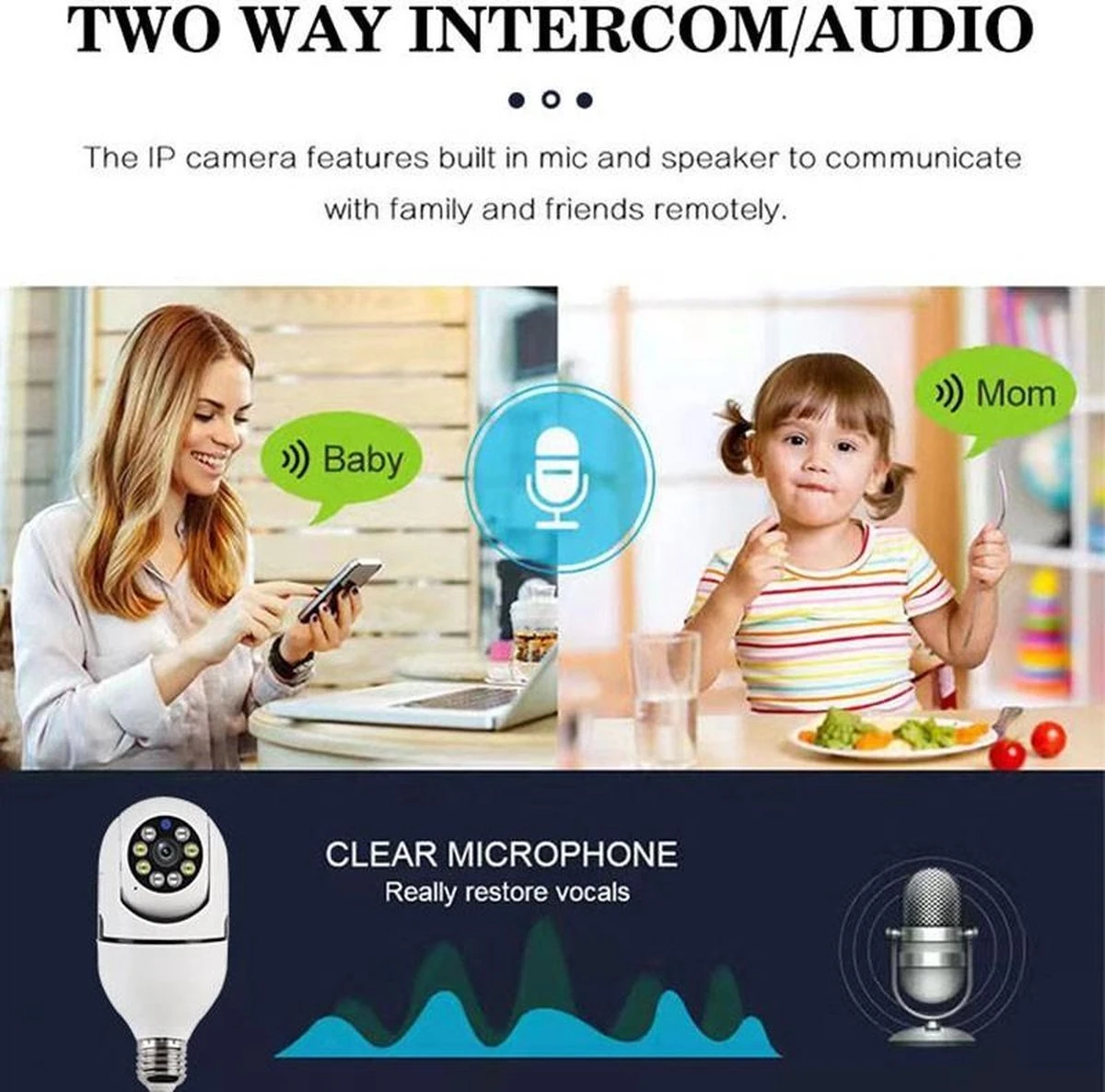 Wifi HD Beveiligingscamera kan worden aangesloten in elke dikke fitting. Op deze manier kan je hem binnen en buiten installeren en hoeft deze niet met een USB adapter aan het stopcontact te worden aangesloten! Ideaal als je écht overal zicht wil hebben, of de camera graag verdekt opstelt. Met behulp van de handige app kan je de camera waar je ook bent draaien en opnames maken. Zo ben je dag én nacht voorzien van de beste beelden.