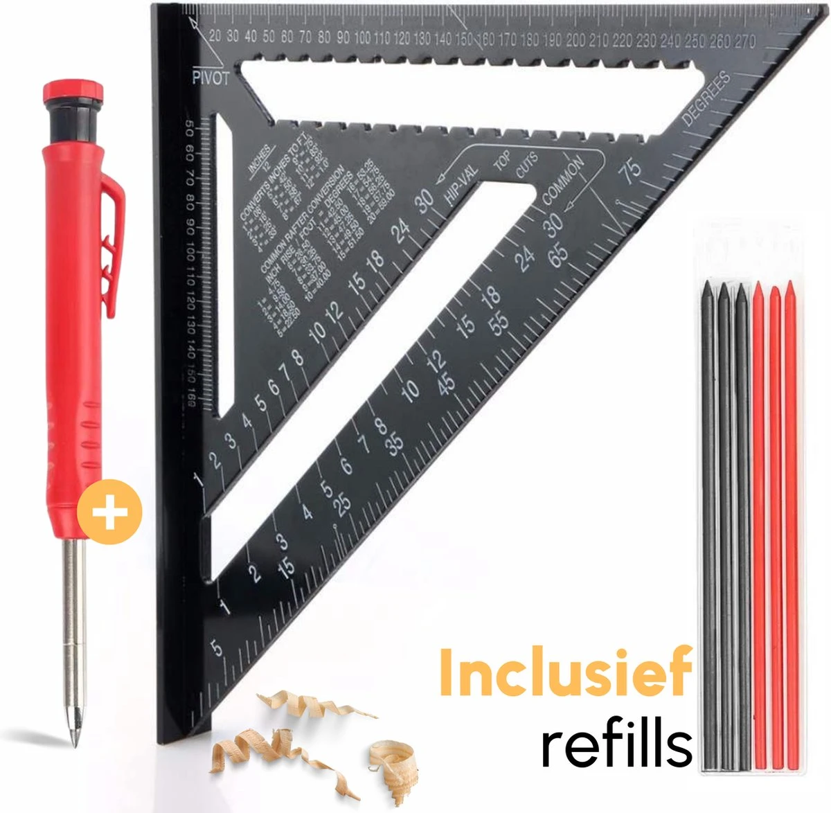 De Speed Square is ideaal voor het tekenen van strakke lijnen en hoeken of als zaagbegeleiding. Handig voor houtbewerkers, timmermannen, klussers, kledingmakers, tekenaars en voor nog veel meer praktische klussers.