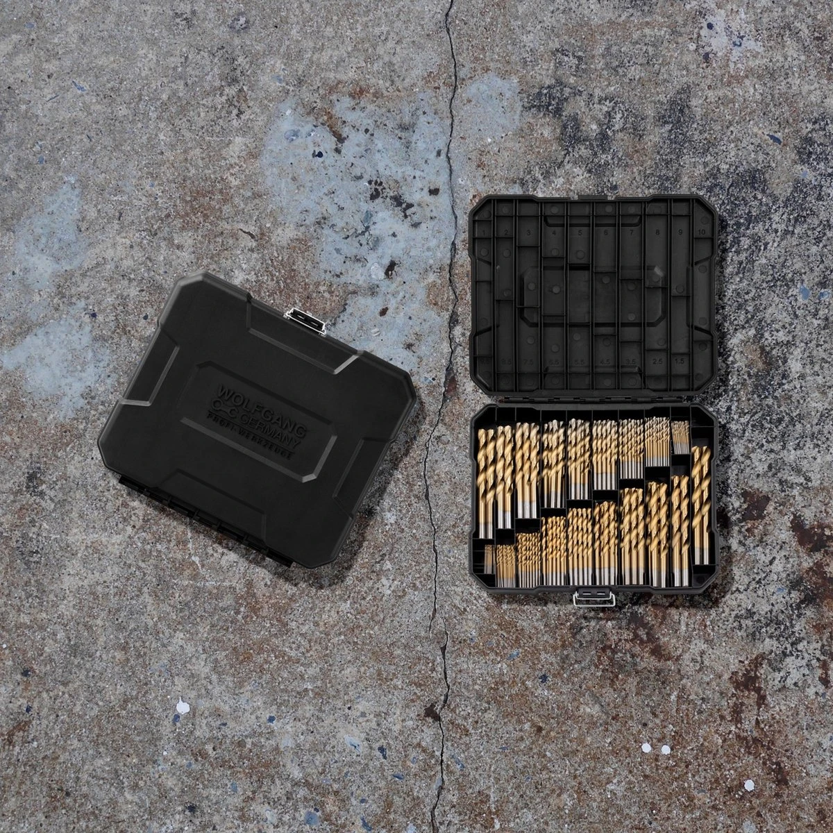 Met deze 170-delige borenset van Wolfgang Germany heb je altijd de juiste formaat boor bij de hand! De set wordt geleverd in een handige opbergkoffer. De boren zijn gemaakt van HSS (High Speed Steel) titanium en voorzien van een speciale coating voor een hogere hardheid. De boren blijven daardoor ook langer scherp. De boren zijn geschikt voor kunststof, (hard)hout en metaal. Let op: de set is minder geschikt voor harde materialen als RVS.